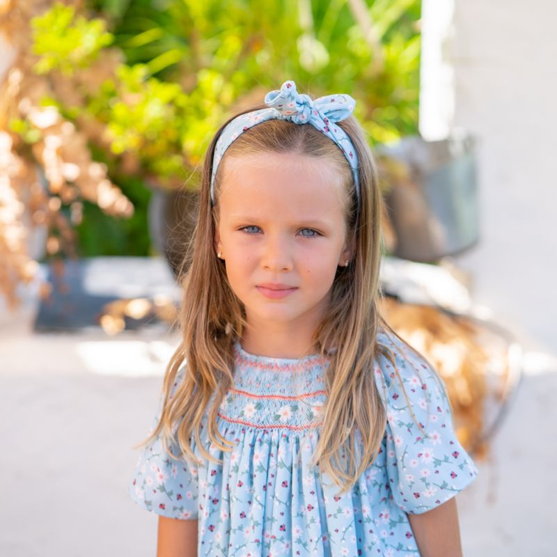 Lleva gomita atrás para ajustar mejor a la cabecita de cada niña con la lazada.